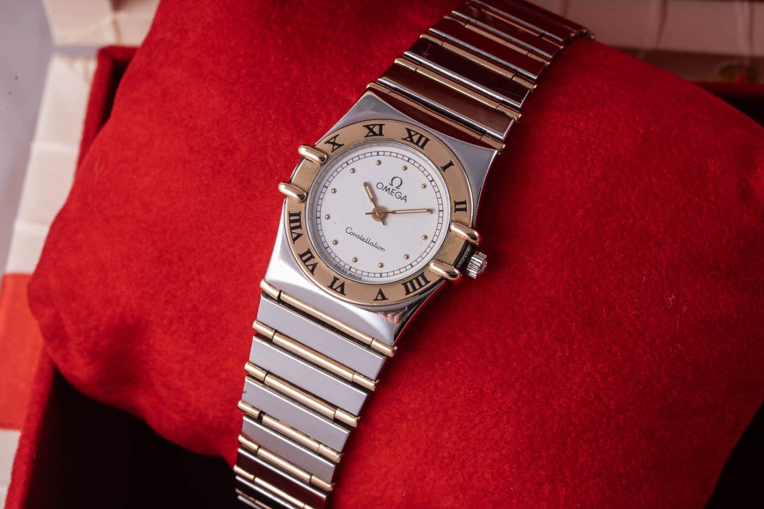 szép állapotban dobozában tömör 18k arany részek quartz zafir kn24mm