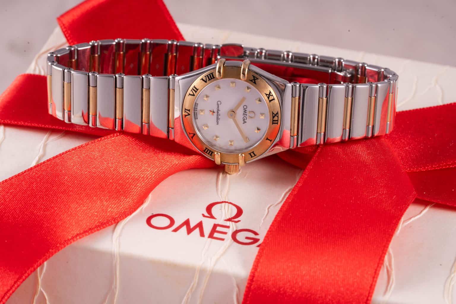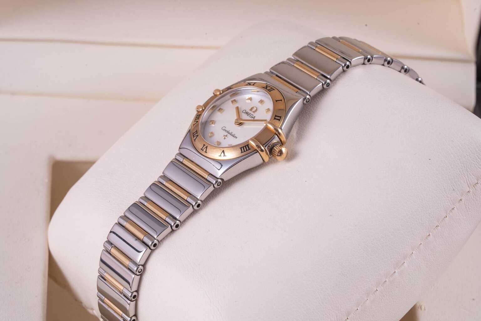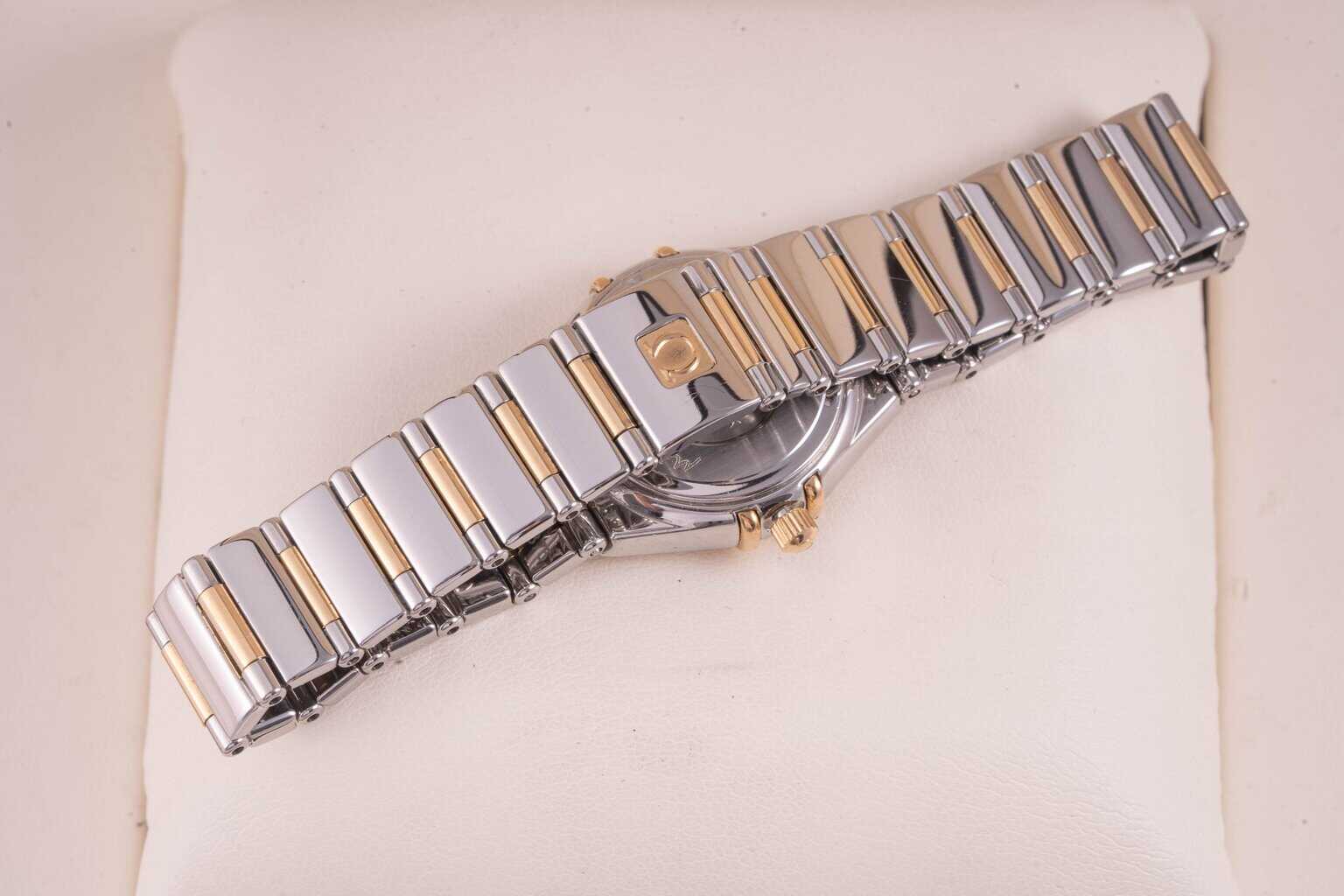 gyönyörű állapot dobozában tömör 18k arany részekkel quartz kagylóból készült számlap zafír üveg 24mm ref:1361.71